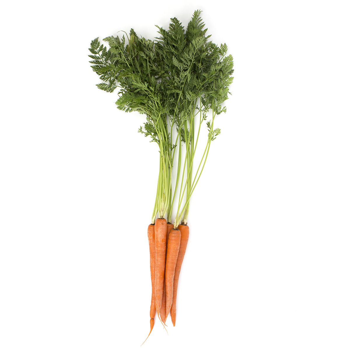 These sweet, deep-orange baby carrots are grown from heirloom French seed.